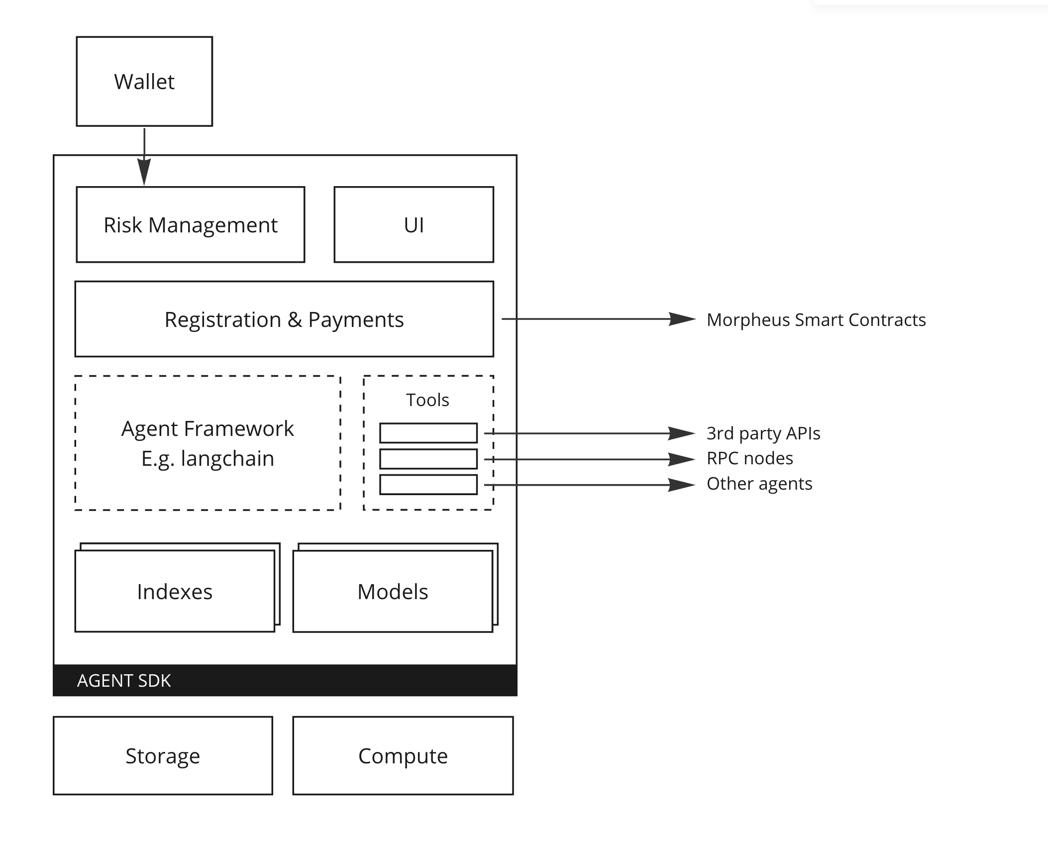A Smart Agent may run entirely stand-alone, or it may register itself with the Morpheus network, in which case it can coordinate with other agents and offer its services to the network.